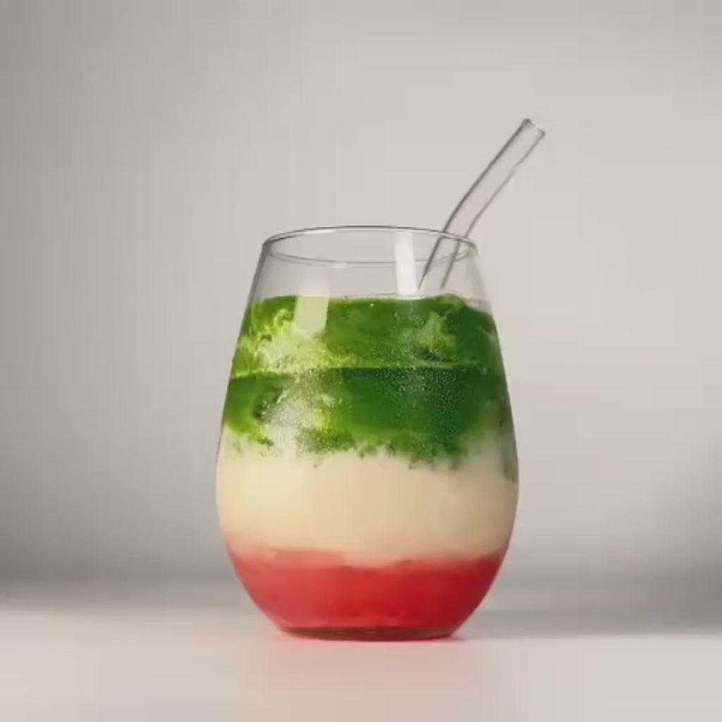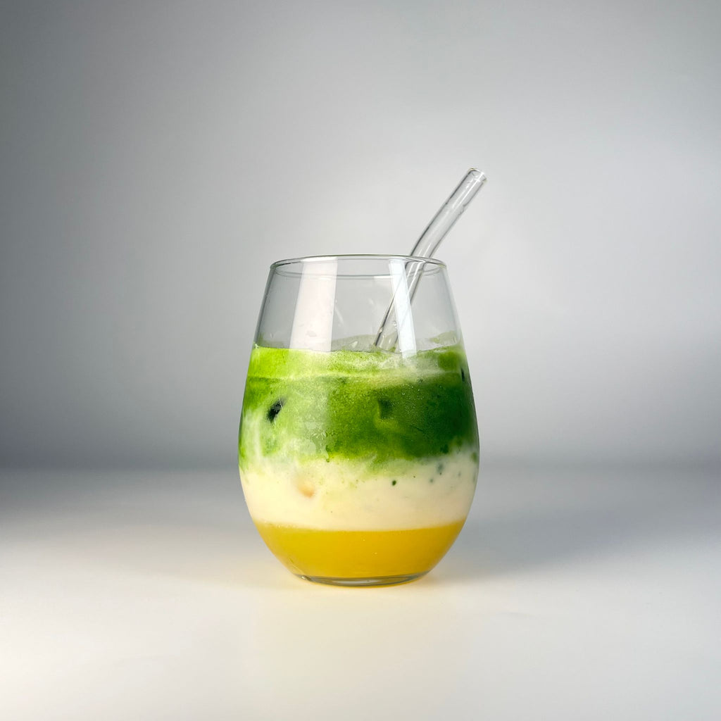 Shake matcha with water, then pour it in to create the layers.